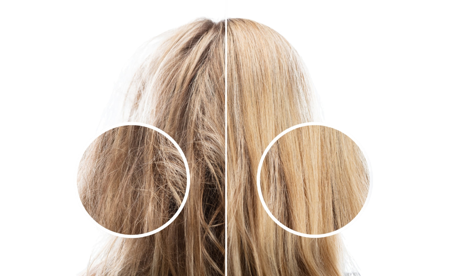 Ergebnis: Haarbruch, Frizz, beschädigte Schuppenschicht